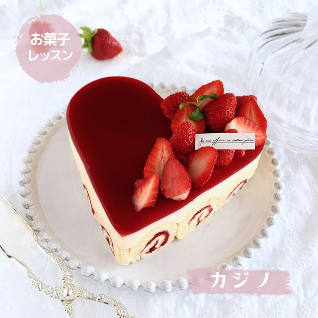 ちょっとレトロなフランス菓子、カジノです。 渦巻き状の小さなロールケーキを貼り付けたケーキで、回転するルーレット台から名付けられたそうです。ケーキの中はババロアと苺。真っ赤なグラサージュを流して仕上げます。 元々は丸いセルクルで仕上げますが、2月はバレンタイン ということで、ハート型にかわいくアレンジしました。 作るのが楽しくなるケーキです♪♪ 【レッスンで学べる事】 ビスキュイ生地の作り方、ババロア、焼き方、敷き込み、グラサージュ、デコレーションetc... 【大きさ】 17センチ1台 【保存方法】 常温で約4日間。冷凍可能。無添加で安心の材料を使っております。出来るだけお早めにお召し上がりください。 【レッスン料】 ビジター 9,800円 会員 8,600円 【ご入会に関しまして】 ご入会の場合は翌月分のご予約をお取りしますので、入会金及びレッスン料をお持ちください。 【場所】 阪急神戸線『園田駅』より徒歩7分(詳しい場所はご予約確定後ご連絡いたします。) 入室はレッスン開始5分前より可能です。 【持ち物】 エプロン、ハンドタオル、筆記用具、お持ち帰り用のエコバック、保冷剤 【注意事項】 当教室は女性専用です。また、趣味でお菓子作りを楽しまれる方を対象に行っております。食に関する教室主宰者、菓子類の販売者(開業予定の方を含む)等、ご同業の方はご参加いただけません。お申込み前に必ず“レッスン規約”をご覧ください。 【キャンセルについて】 ご都合が悪くなられた場合は当月もしくは翌月の別の日程への振り替えもしくはレシピのお渡しをさせていただきます。申し訳ございませんが、ご返金は致しかねます。代理の方のご参加も可能です。 受講日の8日前 当月もしくは翌月の別日程へ振替(別メニューでも可)。 7-4日前以降 振替可能。振替手数料として受講料の20%を申し受けいたします。 3日前以降 振替不可。レシピのお渡しのみ。 銀行振込をお選びいただいたにも関わらず、期日内のお支払いがない場合は、システム上次回以降お申し込みいただけません。 発熱や咳などの風邪の症状がある場合は、参加をお断りさせていただきます。当日でも必ずキャンセルのご連絡をお願いします。