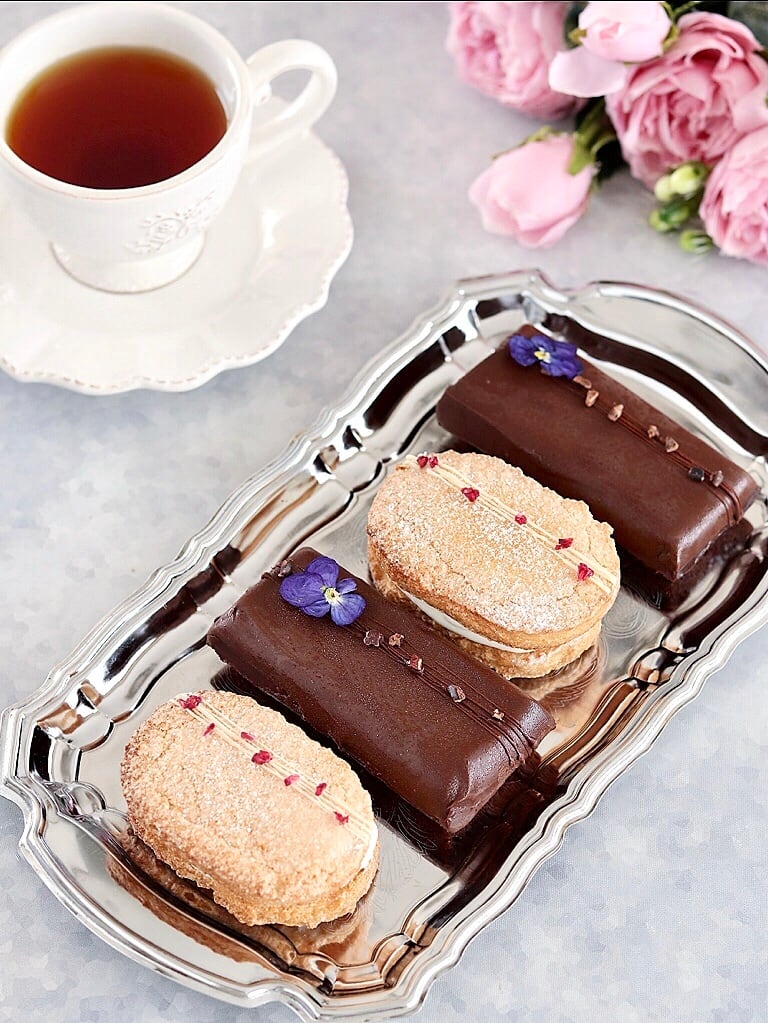 もう一品はチョコクリームフィナンシェ。こちらは昔、パリのコルドンブルーのシェフにこっそり教わったもの。フィナンシェとチョコクリームを合わせてチョココーティングで仕上げます。チョコ好きには堪らないちょっと大人の贅沢な一品。いつものフィナンシェがランクアップします。